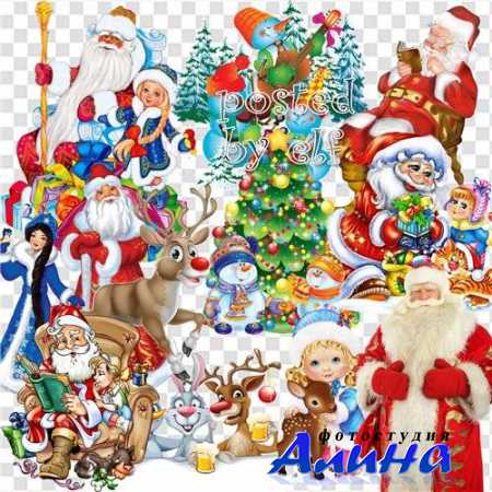Скачать Клипарт новогодний в png формате с веселыми изображениями деда Мороза, снегурочек, снеговиков с dfiles.ru