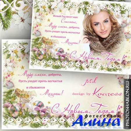 Новогодняя поздравительная рамка-открытка для фотошопа - Новый год несет нам счастье