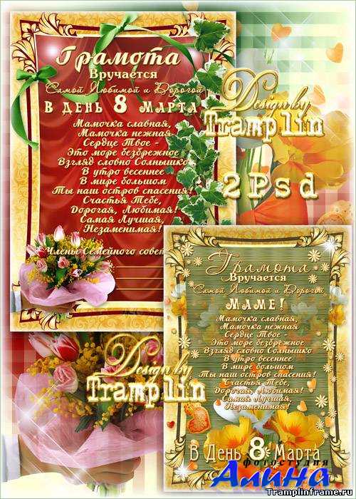 Обновление ссылок Поздравительная Грамота для мамы на 8 марта, могут заказать только зарегистрированные пользователи. Вы так-же можете скачать Фотошоп,