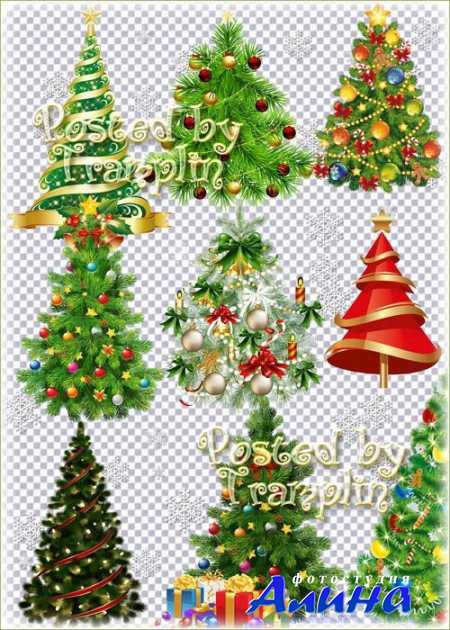 Елочки зеленые с гирляндами, мишурой, праздничными игрушками, свечами, подарками - коллекция клипарта "Елки"