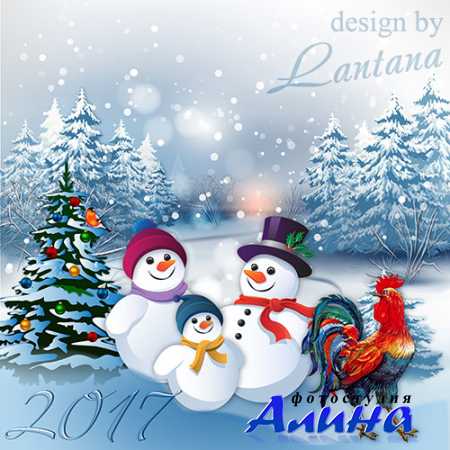 Многослойный PSD исходник для детских коллажей и оформления фото - С нами праздник Новый год встретит Петя - Петушок