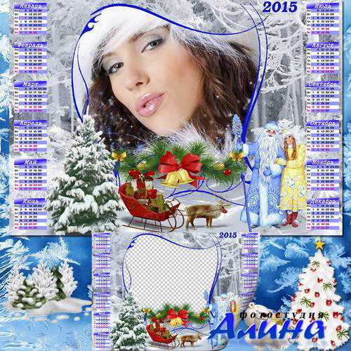 Скачать Календарь на 2015 год с вырезом для фото - Новогодняя радость