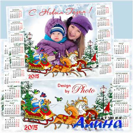 Новогодний календарь - рамка на 2015 год - Дед Мороз спешит с подарками