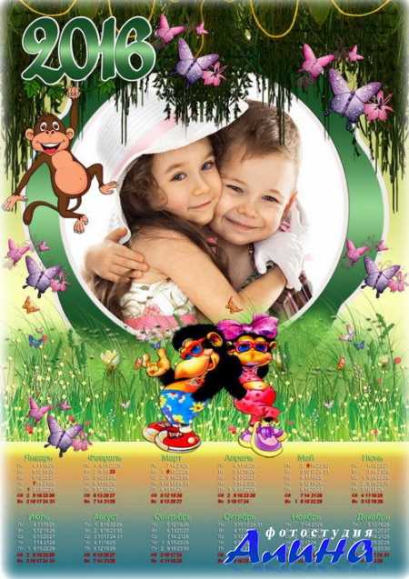 Детская рамка с календарем на 2016 год - Чудные обезьянки