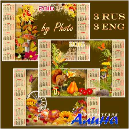 Набор календарей с рамками для фото на 2016 год - Наступила осень