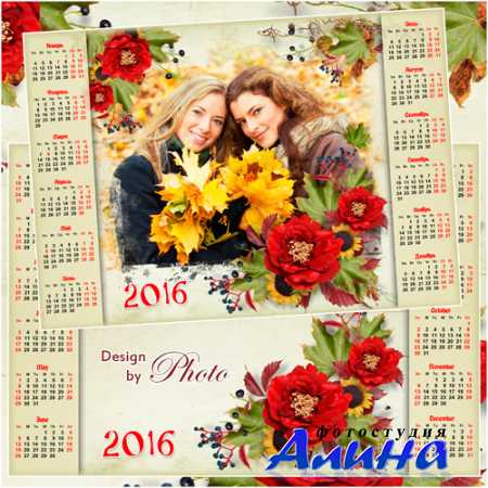 Календарь с рамкой для фото на 2016 год - Яркая осень