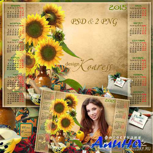 Романтичный календарь на 2015 с рамкой для фотошопа - Цветы и пряности Прованса