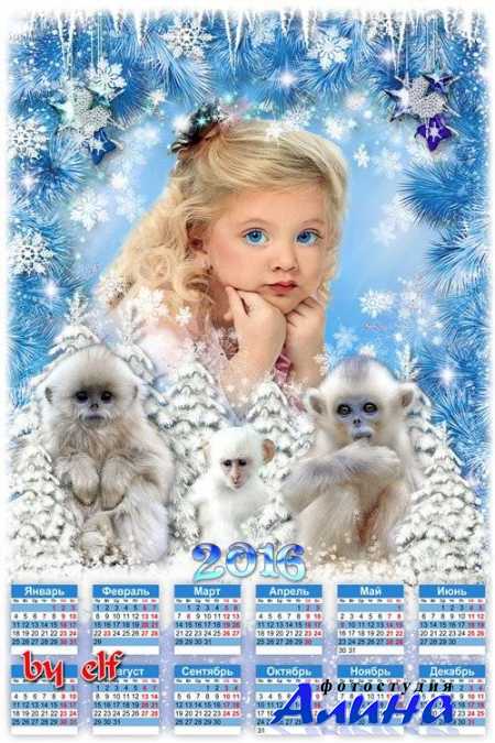 Календарь на 2016 год с вырезом для фото - Пусть удачу принесет обезьянка в Новый год