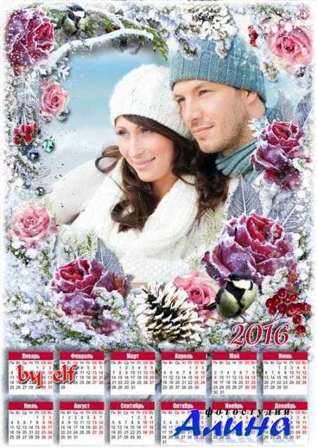 Календарь для фото на 2016 год - С неба падают снежинки, белоснежные пушинки с turbobit.net