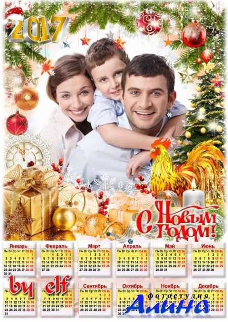 Календарь на 2017 год с рамкой для фотошопа - Новый год во всю к нам мчится