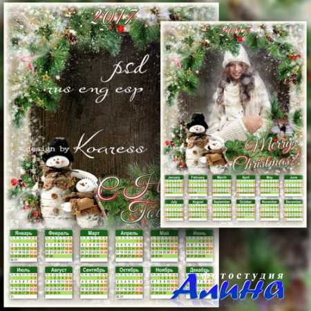 Новогодний зимний календарь на 2017 год с фоторамкой - Симпатичные снеговики
