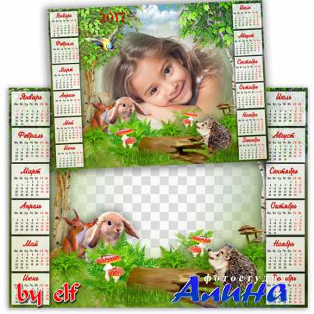 Календарь на 2017 год с рамкой для фотошопа - В сказочном лесу