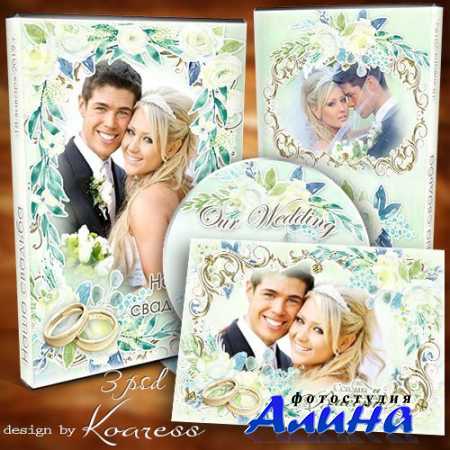 Скачать Свадебный набор из обложки, задувки для диска с видео и рамки для фото жениха и невесты - Наша свадьба