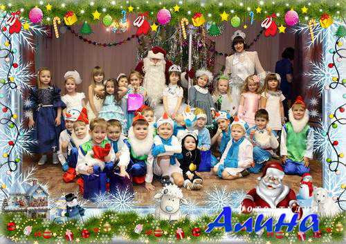 Новости похожие на Новогодняя групповая рамка для оформления фото - Веселый утренник: