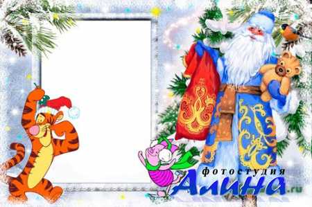 Детская новогодняя рамка для Photoshop - Тигра и дед Мороз
