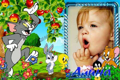 Скачать Детская рамка для Photoshop - Том и Джерри на полянке с DepositFiles