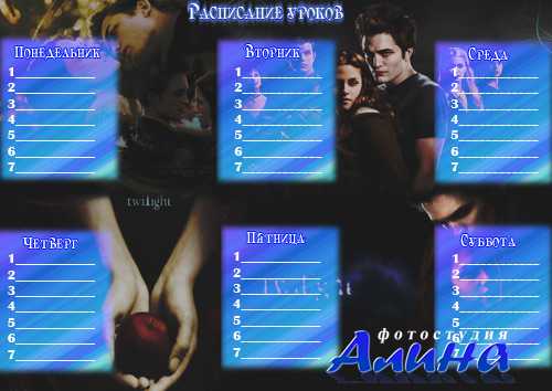 Новости похожие на Шаблон расписания уроков в школе - Сумерки:
