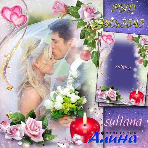 Новости похожие на Нежная свадебная рамка - Любовь, свеча и розы: