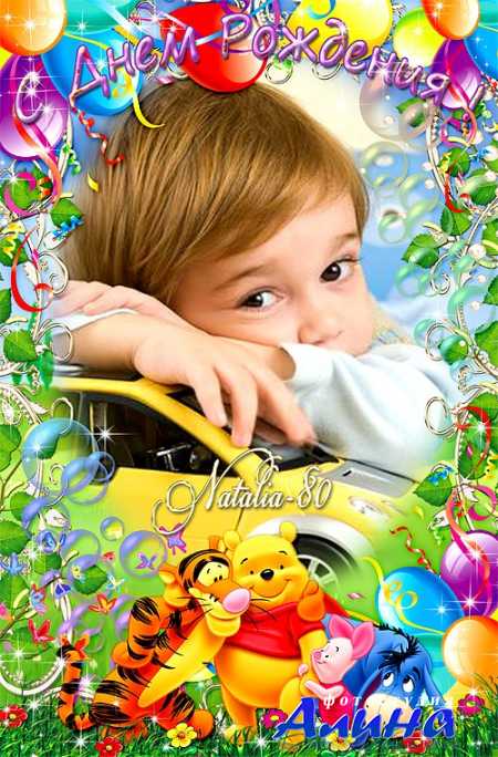 Праздничная рамочка для оформления детских фото - День Рождения с Винни