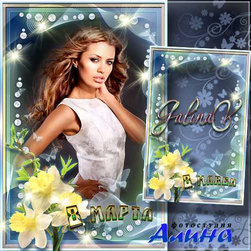 Женская праздничная рамка - Жёлтые нарциссы на 8 Марта