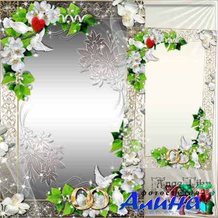 Скачать Свадебная рамка для фото - Белые цветы и голуби с letitbit.net