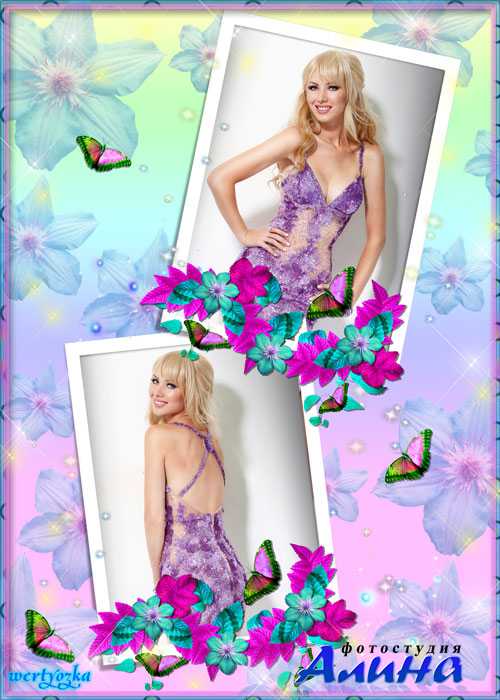 Обновление ссылок Цветочная рамка для двух фото - Чувственные цветы клематис, могут заказать только зарегистрированные пользователи. Вы так-же можете скачать Фотошоп / Рамки, Цветочная, рамка, двух, фото, Чувственные, цветы, клематис