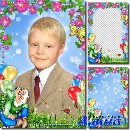 Новости похожие на Детская рамка для фотошопа – Праздничная с гномиком: