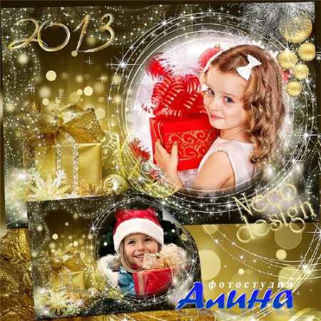Эта золотая рамка для Нового года отлично украсит вашу фотографию