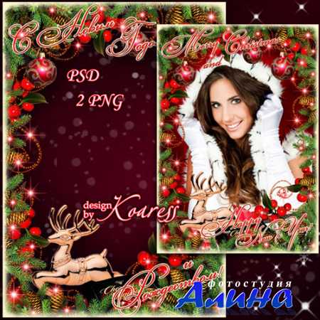 Поздравительная Новогодняя и Рождественская рамка для фотошопа - Счастливых праздников
