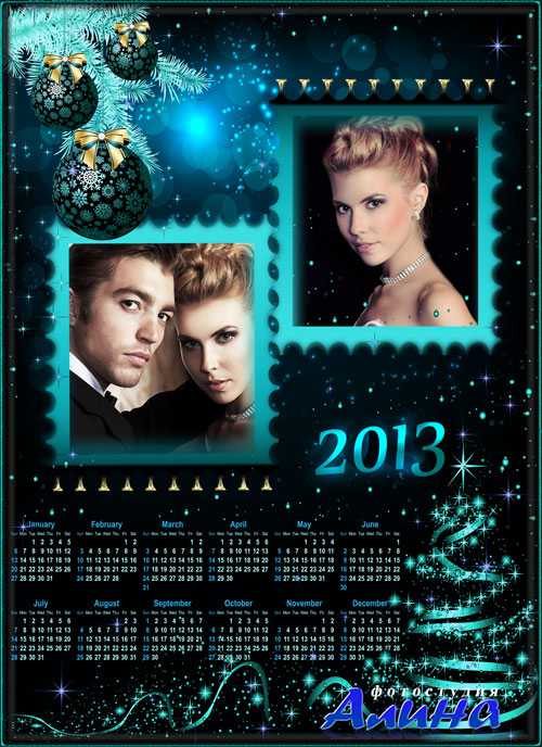 Скачать Календарь рамка 2013 - Праздничная елка в голубом сиянии с shareflare