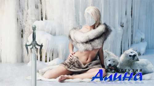 Шаблон для фото - Красивая девушка в мехах с белыми волками